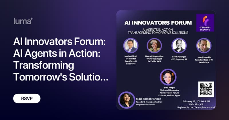 Are you a founder looking to elevate your company and connect with operators, investors, and prospective customers? Please submit your information here to be featured at our AI Innovators Forum for a founder pitch: https://forms.gle/vgZG47nxmqzMC3LUA